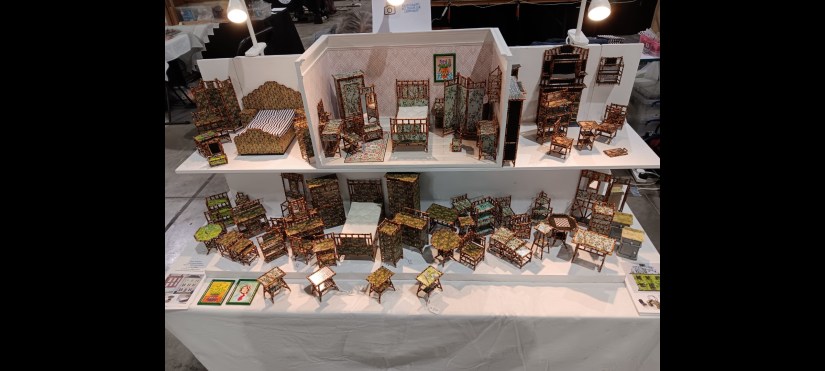 About 12 years ago after scaling back on my building and furniture restoration projects I started making 1/12th scale bamboo style furniture replicating some of the pieces I used to restore. Then a couple of years before the pandemic I did my first dolls’ house fair and as they say the rest is history.