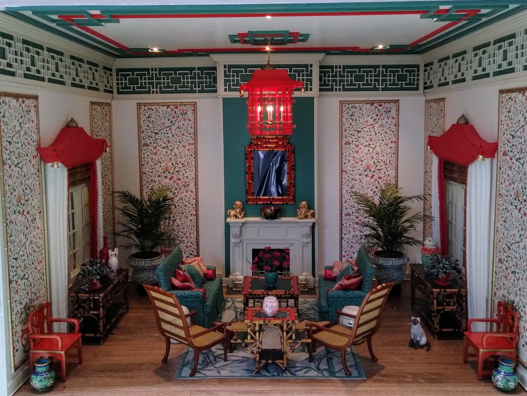 Wonderful Chinoiserie Room. Designed and created by Susan. I was so pleased that she used some of my pieces in her creation. Thank you Tony